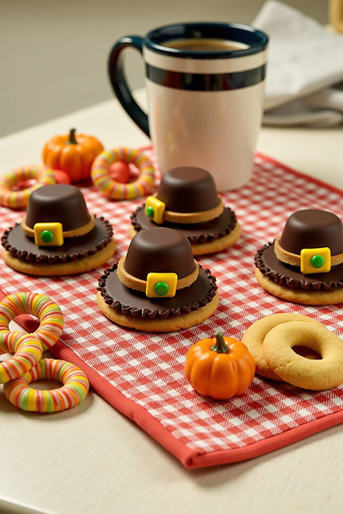 With their irresistible look and easy assembly, Cute Pilgrim Hat Cookies make Thanksgiving extra sweet and stress-free!