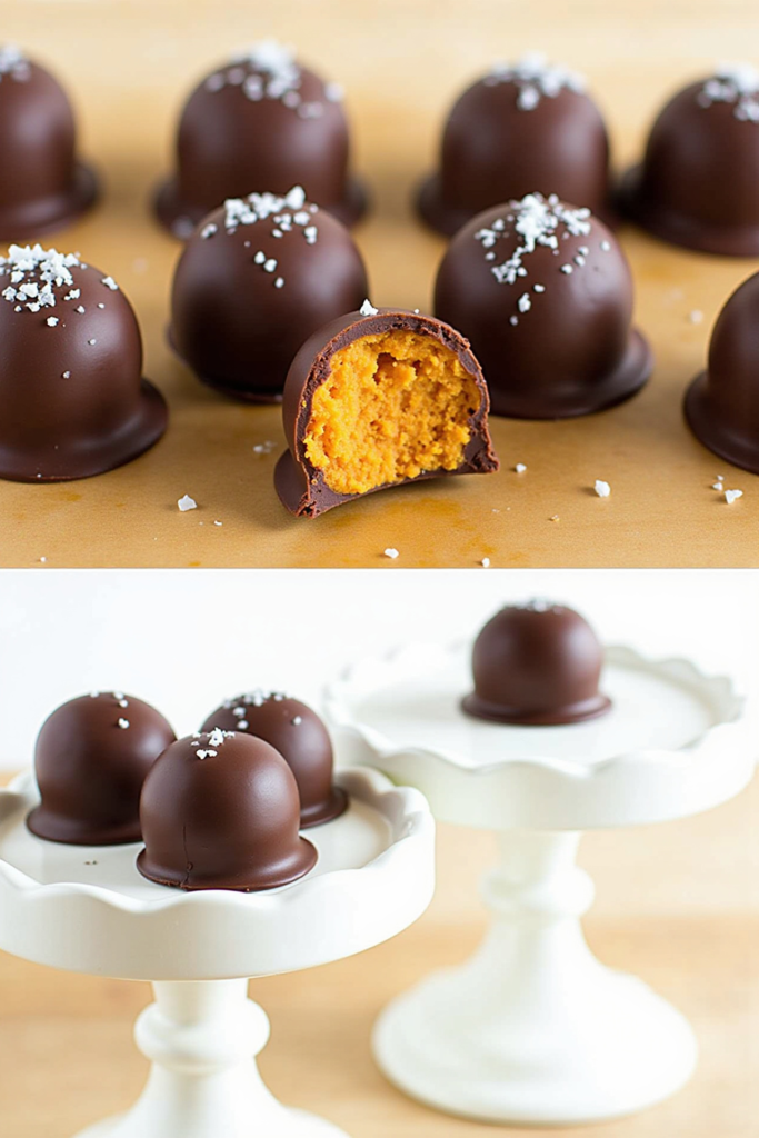 Arrange your truffles on a platter lined with parchment for a stunning dessert display. Sprinkle with a touch of cinnamon or drizzle with extra dark chocolate before serving for extra flair. These truffles pair perfectly with herbal tea, coffee, or as part of a festive autumn snack board.