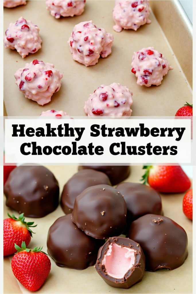 This recipe makes about 16 clusters, depending on size. Each cluster provides roughly 70–100 calories, with protein from Greek yogurt and antioxidants from strawberries and dark chocolate. It’s a lighter treat you can enjoy any day of the week.