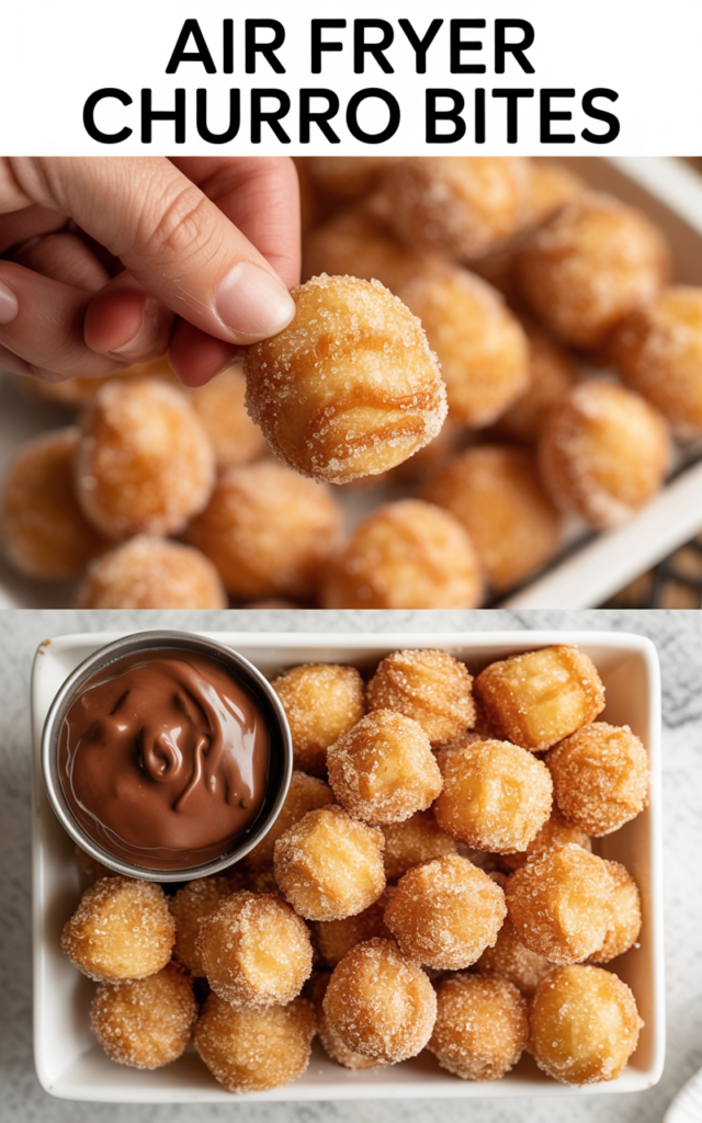 While bites are still warm, toss them in a cinnamon sugar mixture for the iconic churro coating. For perfect, even coverage, shake them gently in a wide bowl or a zip-top bag.