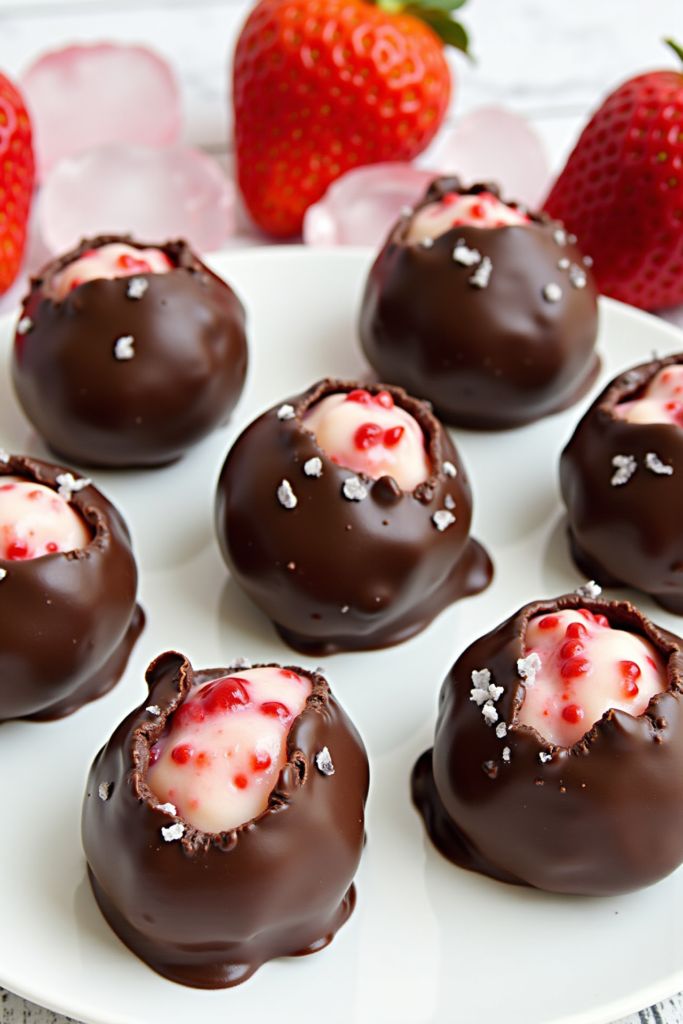 Once coated, drop spoonfuls of the strawberry-yogurt mixture onto a lined baking sheet and freeze until firm. Meanwhile, melt your favorite sweet or semi-sweet chocolate—either in a microwave or using a double boiler—for silky results. Once the clusters are frozen, dip them into the melted chocolate and return them to the freezer. The chocolate layer hardens quickly, locking in the juicy, creamy filling within.